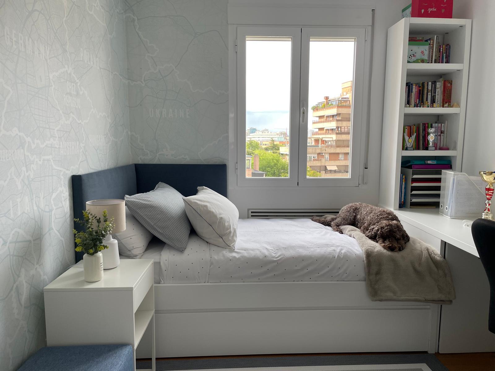 El diseño de una habitación para un adolescente es un reto emocionante que requiere creatividad y funcionalidad a partes iguales. En este proyecto, nos encargamos de crear un espacio único para un adolescente, con un diseño que perdure en el tiempo y que sea atemporal para que dure a lo largo de los años. La personalización fue la clave de esta reforma, destacando un papel pintado especial y mobiliario a medida que le da a la habitación un carácter único y personal.